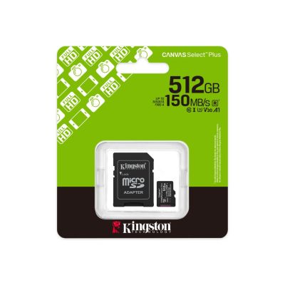 Kingston microSD 512GB Class 10,Canvas Select Plus;SD adapter;150MBs Read,Class 10 UHS-I