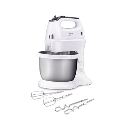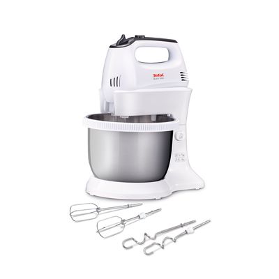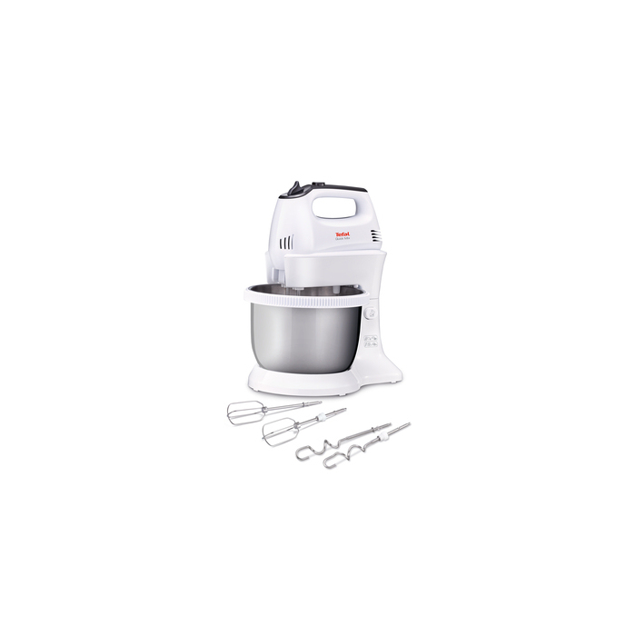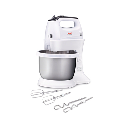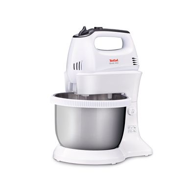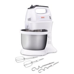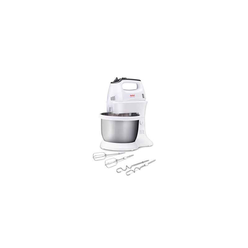 Tefal HT312138 Quick mix, Tefal mikser, bijela boja i inox, 300 W, ručni mikser sa autorotirajućom posudom od 3.5L, mogućnost korištenja bez posude i držača, 5 brzina i turbo funkcija, Set mutilica, mješalica, za tijesto, bjelanke, šlag, Set kukica.