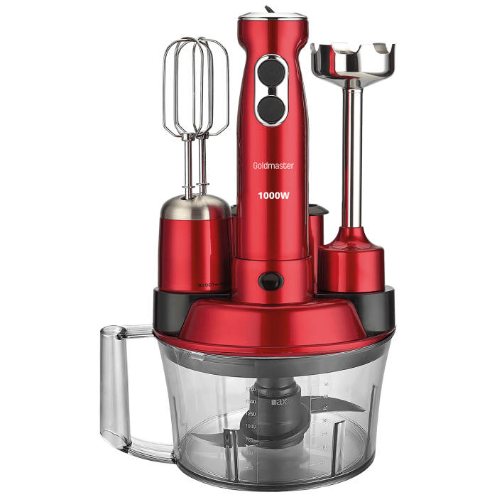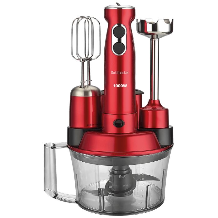 Goldmaster Štapni mikser sa posudom, 5u1, 1000 W, Multipraktik - GM-7239VK Elena Max Dark Red