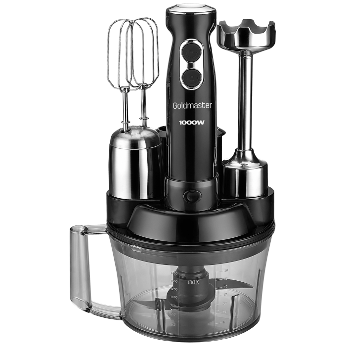 Goldmaster Štapni mikser sa posudom, 5u1, 1000 W, Multipraktik - GM-7239B Elena Max Black