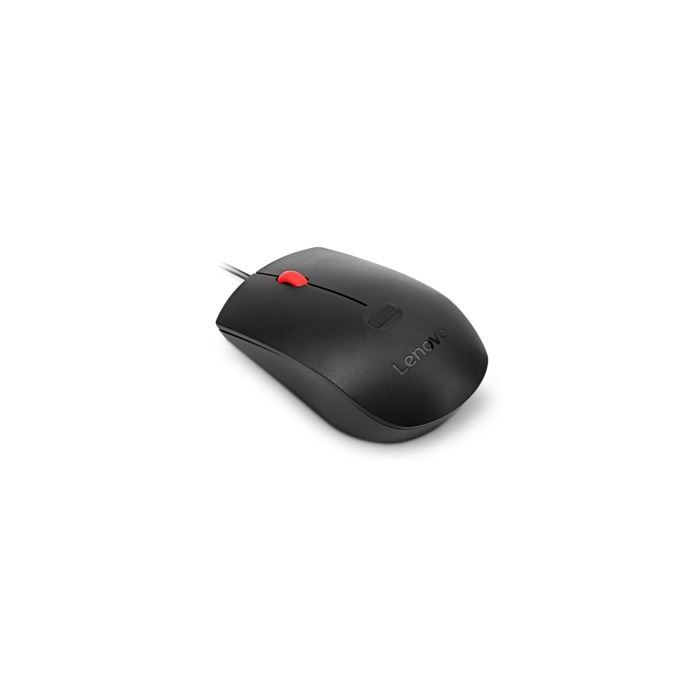 Lenovo žičani miš, USB Essential, optički senzor, 2 tipke + scroll, povezivost putem USB-a, crna boja, 70 g, dužina kabla 1,8 m