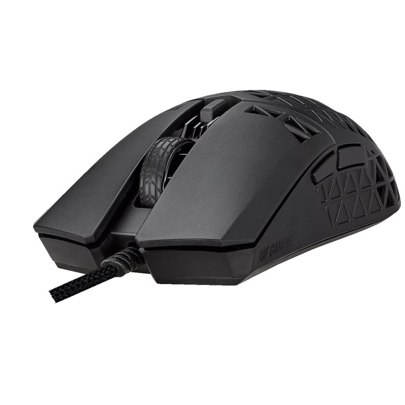 ASUS TUF Gaming M4 Air je ultralagan žičani gaming miš dizajniran za igrače koji žele brzo i precizno praćenje pokreta uz minimalnu težinu. Ovaj miš ima optčki senzor visoke rezolucije do 16 000 DPI koji omogućava precizno praćenje i kontrolu u igrama, uz mogućnost podešavanja DPI-a kroz poseban taster. Konstrukcija koristi Air Shell dizajn koji smanjuje ukupnu težinu na samo oko 47 g, ali zadržava robusnost. Površina je tretirana ASUS Antibacterial Guard antibakterijskim premazom za higijenski osjećaj, dok IPX6 vodootporna zaštita čuva elektroniku od prosipanja tekućina i vlage. Miš ima šest taktilnih programabilnih tastera, fleksibilni TUF Gaming Paracord kabel i 100 % PTFE nožice koje omogućavaju glatko klizanje na podlozi. Armoury Crate softver omogućava jednostavnu prilagodbu profila, funkcija tastera i performansi.