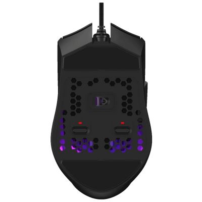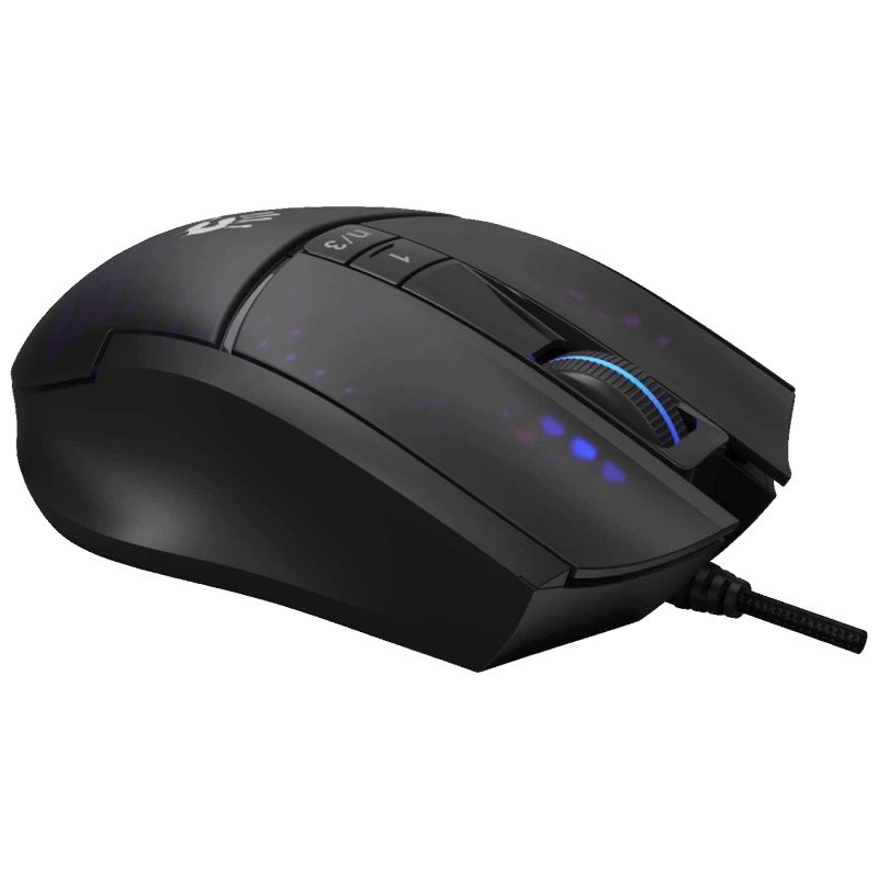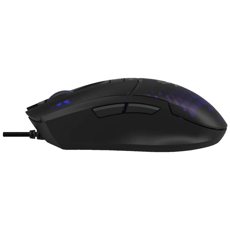 RGB osvjetljenje sa više efekata dodatno naglašava gaming izgled, dok ugrađena memorija omogućava spremanje makro komandi direktno u miš. Fleksibilni pleteni kabl i teflonski klizači osiguravaju glatko i neometano kretanje bez otpora.