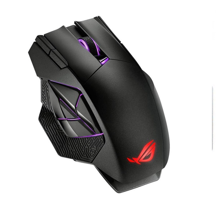 ROG Spatha X bežični gaming miš s magnetskim postoljem za punjenje, poveziv u dva načina rada (žično/2,4 GHz Wireless), napredni senzor od 19000 dpi, 12 programabilnih tipki, ROG Paracord i Aura Sync RGB osvjetljenje, trajanje baterije 67 način u bežičnom načinu rada.