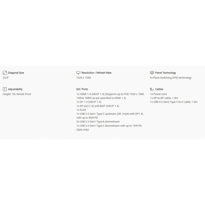 Dell 24 USB-CHub Monitor - P2425HE, 60.5cm (23.8") 1920x1080, FHD, 100Hz, IPS Antiglare, 16:9, 1500:1, 250 cd/m2, 8ms/5ms, 178/178, DP, HDMI, RJ-45, USB-B, 3xUSB-A, 2x USB-C, Tilt, Swivel, Pivot, Height Adjust, 3Y