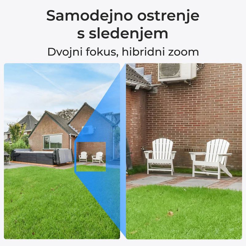 Izkusite povsem nov način sledenja z Reolink TrackMix Series P760. S premikanjem, nagibom in 6-kratnim hibridnim zoomom lahko samodejno sledi zaznanemu cilju in ga poveča za več podrobnosti. S širokokotnim objektivom in teleobjektivom prikazuje slike istega dogodka v celotnem pogledu in slike od blizu na enem zaslonu. Presegnite Full HD in izkusite še nikoli videne podrobnosti s to kamero 4K. Dvojna leča Širokokotni in teleobjektivi za slike v celotnem pogledu in slike od blizu.Samodejno sledenje povečavi, Pomaknite se za 355° in nagnite za 90°, da se premikajoča tarča samodejno premika in poveča. 6-kratni hibridni zoom,ohranite več podrobnosti z brezhibnim združevanjem optičnega in digitalnega zooma. Prilagodljive možnosti shranjevanja Uživajte v prilagodljivosti več možnosti shranjevanja