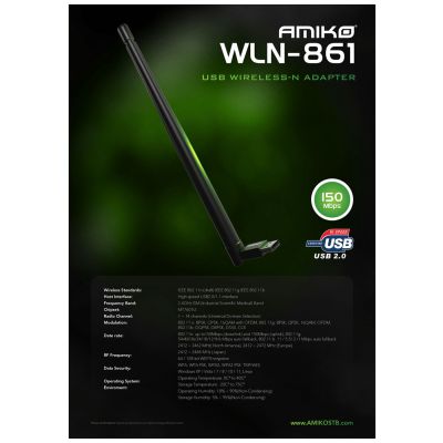 Amiko Wi-Fi mrežna kartica, USB, 2.4 GHz, 150 Mbps - WLN-861