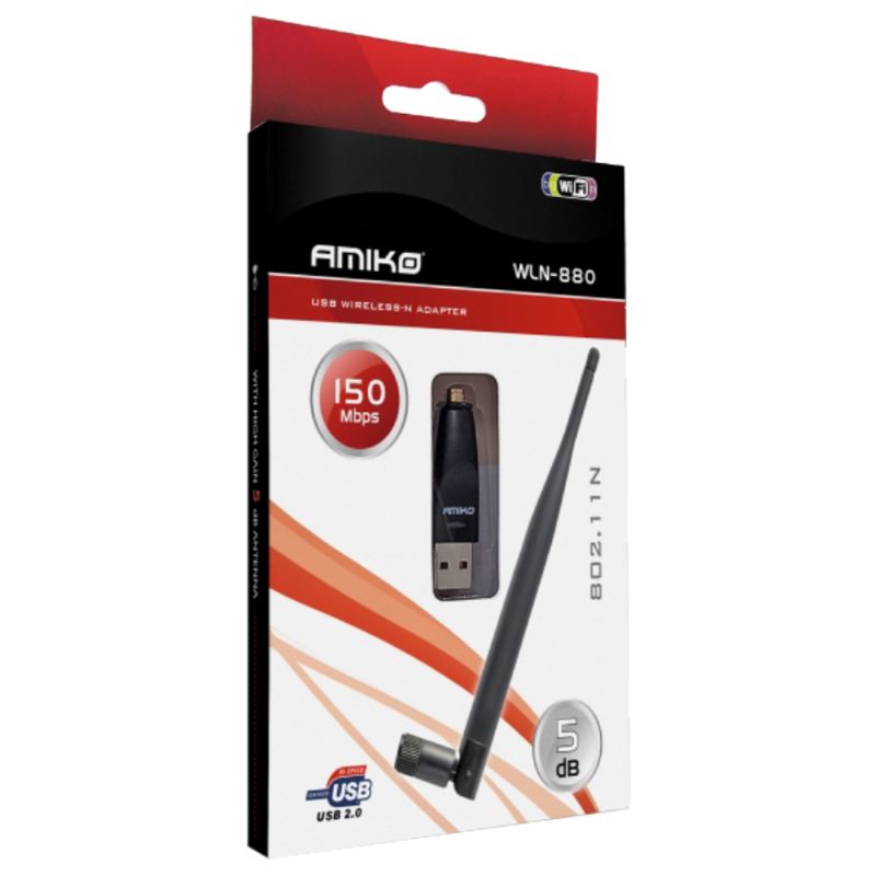 Amiko Wi-Fi mrežna kartica, USB, 2.4 GHz, 5 dB, 150 Mbps - WLN-880
