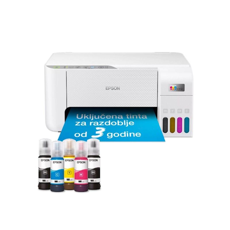 EcoTank omogucuje ispisivanje kod kuce bez briga – spremnici s tintom iznimno visokog kapaciteta omogucuju nadopunjavanje bez nereda, a poseban dizajn bocica je osmišljen tako da se mogu umetnuti samo ispravne boje. S prednjim spremnikom za tintu na kojem je lako vidjeti kada je potrebno dodatno punjenje. Sa stražnjim pretincem za 100 listova papira, ispisom fotografija bez obruba (do 10 x 15 cm) i brzinama ispisa do 10 stranica u minuti, možete s lakocom ubrzati razlicite zadatke.
