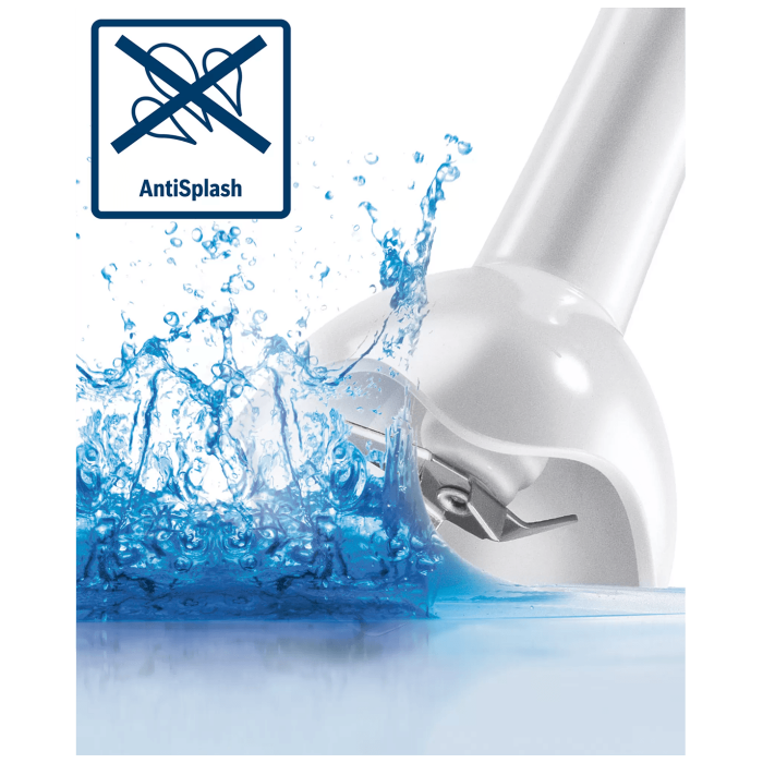 Štapni mikser, snaga motora 280 W, tih rad, nož s 4 oštrice od nehrđajućeg čelika jamči učinkovite rezultate miješanja - s funkcijom AntiSplash, ergonomska ručka za udobno držanje prilikom miješanja, jednostavna upotreba, miješanje jednim pritiskom gumba, odvojiva glava miješalice za lakše čišćenje, materijal izrade plastika