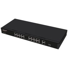 16 portni mrežni 10/100 switch, 16 PoE port, 2 x Gigabit uplink port, 1 x SFP uplink port, RJ 45, PoE 30 W max. po izlazu, napajanje 100-240 V 50/60 Hz, radna temperatura -10 °C - 55 °C