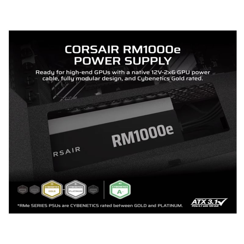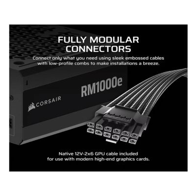 Corsair PSU 1000W RM1000eGold, Fully Modular, 12V-2x66xSATA, 3xPCIe, ATX 3.1, PCIe 5.1