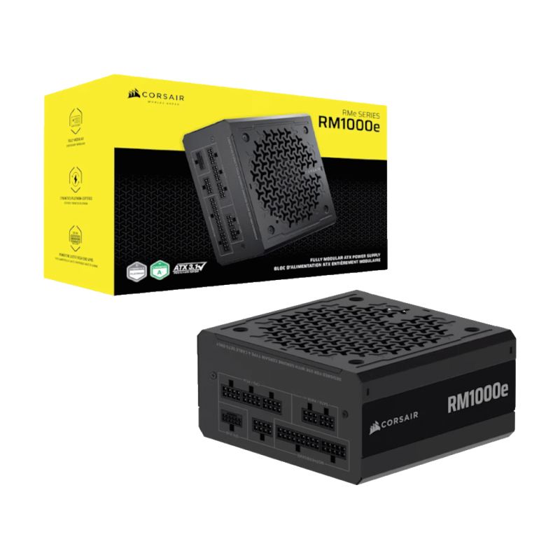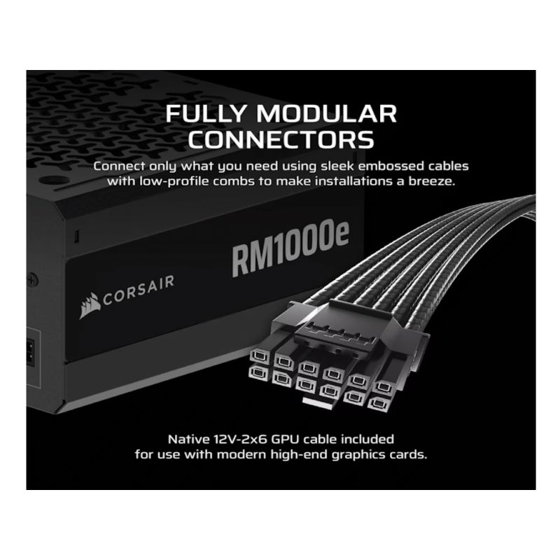 Corsair PSU 1000W RM1000e, Gold, Fully Modular, 12V-2x6, 6xSATA, 3xPCIe, ATX 3.1, PCIe 5.1, 50-series ready