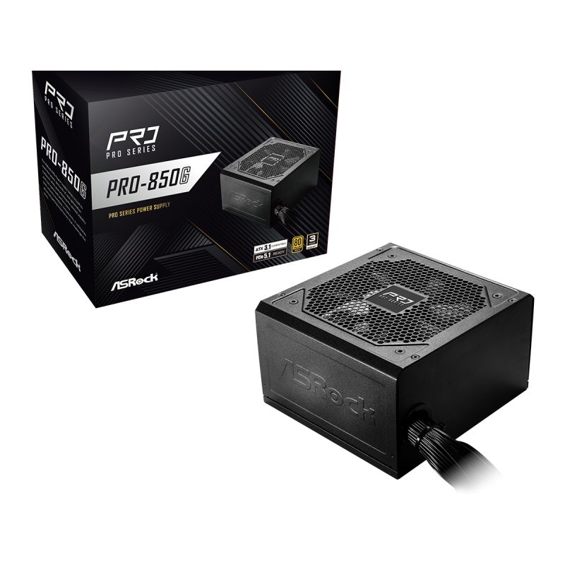 ASRock PSU 850W Gold, Pro, 80PLUS, 120mm fan, ATX 3.1, PCIe 5.1