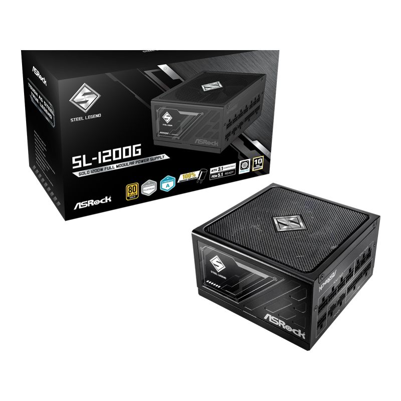 ASROCK PSU 1200W Gold, Steel Legend, Fully Modular, 80PLUS, 135mm fan, ATX 3.1, PCIe 5.1, Japanese Capacitors
