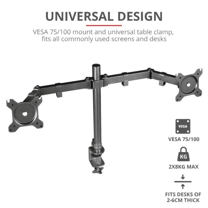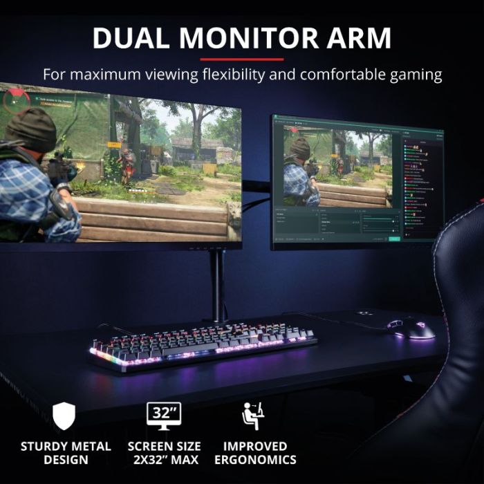 Trust GXT 1120 MARA dual nosač monitora, stolni, za maksimalnu fleksibilnost i upotpunjen gaming doživljaj.