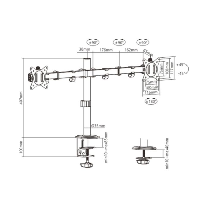 NOSAČ ZA DVA MONITORA GEMBIRD MA-D2-01, montaža na stol, (rotate, tilt, swivel), 17”-32”, up to 9 kg