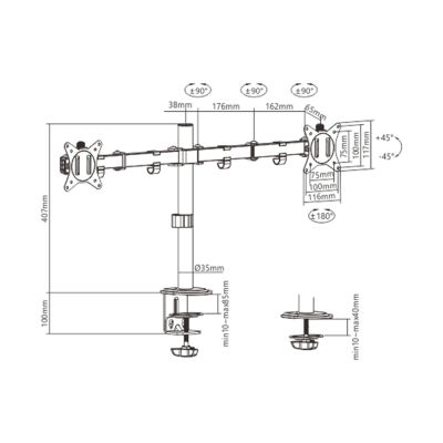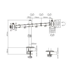 NOSAČ ZA DVA MONITORA GEMBIRD MA-D2-01, montaža na sto, (rotate, tilt, swivel), 17”-32”, up to 9 kg