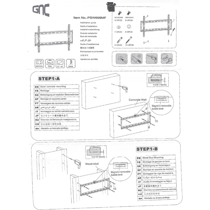 Zidni nosač GNC PSW698MF, 32"-75", 35kg, VESA 600x400, low profile 25mm