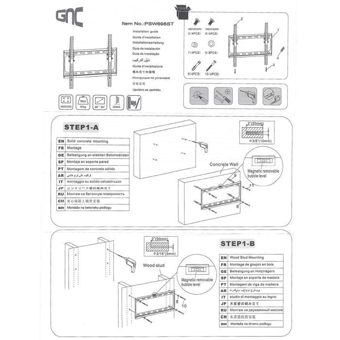 Zidni nosač GNC PSW698ST, 26"-55", 30kg, VESA 400x400, nagib, low profile 25mm