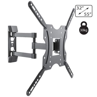Zidni nosač za TV prijemnike 32" - 55", maximalno opterećenja 30 kg, udaljenost od zida 6.2 do 42.2 cm, VESA 100x100, 200x100, 200x200, 300x200, 300x300, 400x200, 400x400 mm, jednostavna montaža, fiksno pozicioniranje.