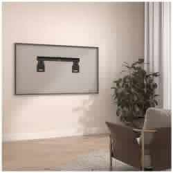 Ultra-flat dizajn omogućava zaslonu da stoji vrlo blizu zida — minimalna udaljenost između televizora i zida je svega nekoliko centimetara. Nosač uključuje sigurnosne kuke koje sprječavaju slučajni ispad TV-a, a konstrukcija je izrađena od čvrstog metala s robusnim premazom kako bi se osigurala dugotrajnost i otpornost.