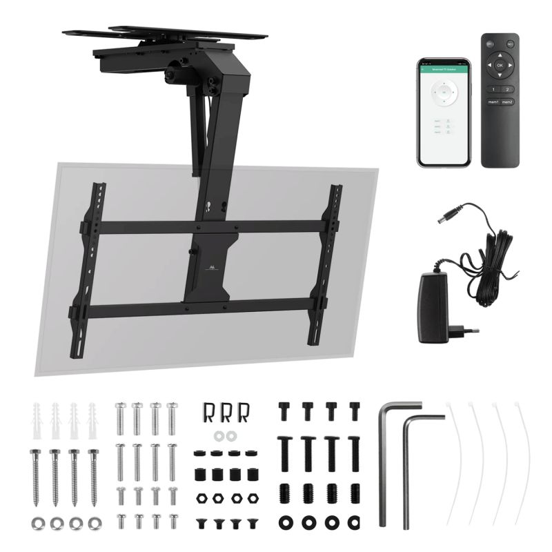 Maclean MC-109 T je električni stropni nosač za televizore, koji omogućava automatsko spuštanje i podizanje ekrana uz podršku putem aplikacije Tuya i daljinskog upravljača. Namenjen je za potrebe modernih TV sistema, sale, salona ili stropnih instalacija.