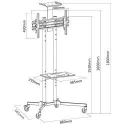 Stalak karakterizira praktičan dizajn, vrlo jednostavna montaža i vrlo širok izbor televizora koji se na njega mogu montirati. Stol je izrađen od visokokvalitetnih materijala. Kolica su opremljena s četiri kotača (s bravom) zahvaljujući kojima možete jednostavno premjestiti cijeli set na bilo koje mjesto. Set sadrži vijke potrebne za pravilnu montažu i slikovne upute za montažu.