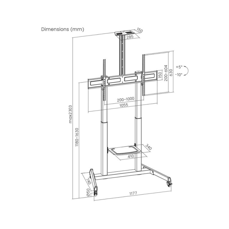 Nosač za TV na stalku sa točkovima GEMBIRD TVS-100T-03, 60" - 100"