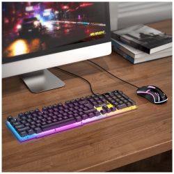 Tipkovnica + miš, gaming set, RGB pozadinsko osvjetljenje, QWERTY tipke, 104 tipke, dužina kabela 1.5 met., dimenzije 435 x 132 x 30 mm, USB