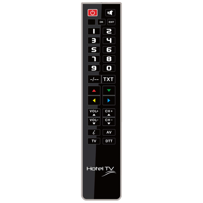 Programirajuči daljinski , programira se za do dva točno odredjena uredjaja, bez tipke MENU pogodno za hotele