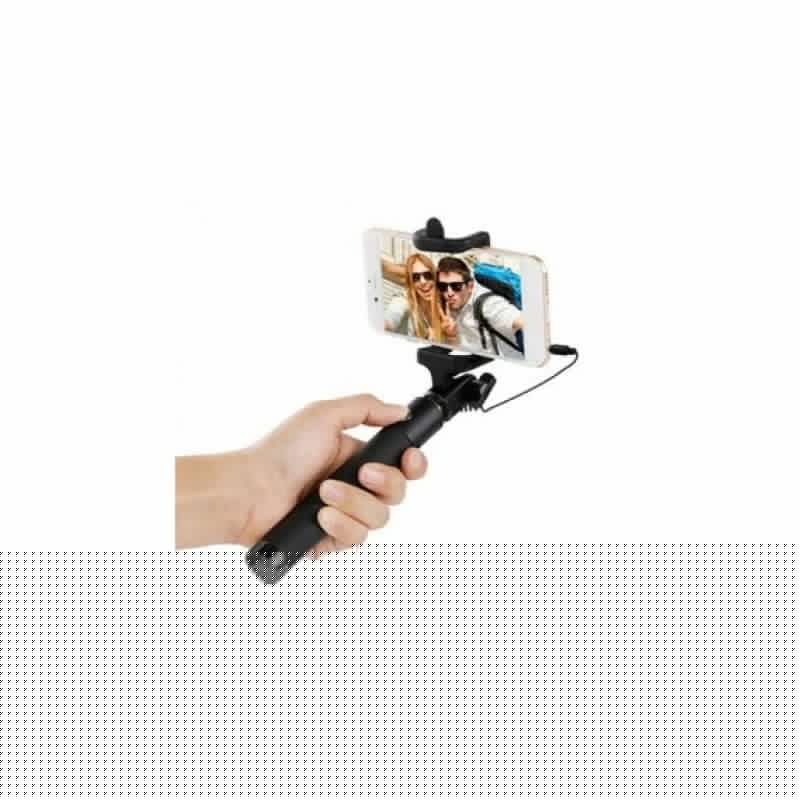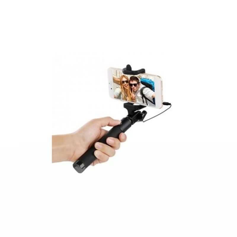 Wired selfie stick, 3.5 mm cable, Compatibility: IOS 5.0, Android 4.2 or above, Stainless steel, 124 g, Fits: phones from 58 to 75 mm, length 18.5 - 75 cm. Attention Make sure your phone volume button can take pictures or your camera app can be set to take picture with volume button.