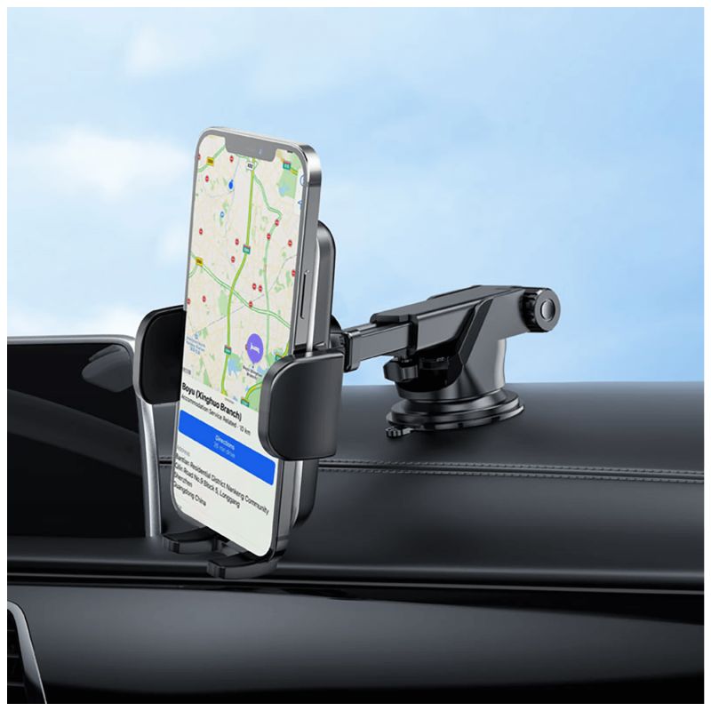 Univerzalni auto držač za smartphone, tablete, navigacije 4.5 - 6.7", raspon stezaljki 55 - 95 mm, vakuum držač, za staklo ili kontrolnu konzolu, dimenzije 170 x 70 x 110 mm.