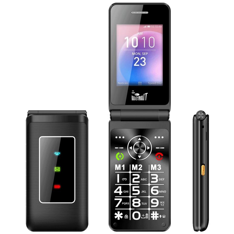 - Uz novi meanit Senior Flip Max na tržište stigao je još jedan model namijenjen starijim osobama – meanit Flip XXL. Već je iz samog naziva jasno o čemu se radi. Flip označava preklopne telefone tako da nema nikakvog straha od slučajnih odlaznih poziva jer je netko zaboravio zaključati tipkovnicu. Sklopivi su mobiteli praktičniji i za nošenje jer zauzimaju manje prostora.
