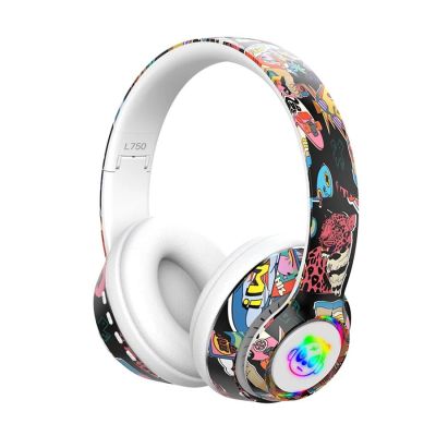 Slušalice bluetooth L750 HiFi RGB stickerbomb design, white