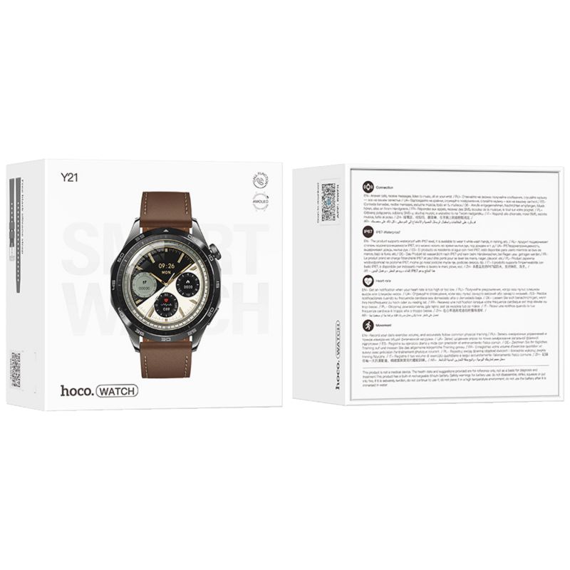 Elegantan, vodootporan pametni sat Hoco Y21 savršen je za posao, dom, putovanje ili vježbanje. Ima AMOLED ekran u boji, višesportske modove, mjeri broj otkucaja srca i zasićenost i prati spavanje. Omogućuje vam upućivanje poziva, upravljanje vezama, pregledavanje kontakata, čitanje i odgovaranje na poruke i obavijesti.