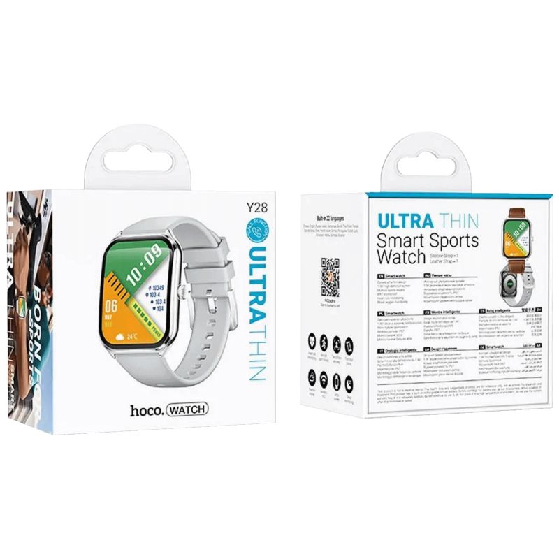Elegantni, vodootporni Hoco Y28 pametni sat savršen je za posao, kuću, putovanja ili vežbanje. Opremljen je AMOLED ekranom u boji, višestrukim sportskim režimima, merenjem pulsa i zasićenosti kiseonikom, kao i praćenjem sna. Omogućava obavljanje poziva, upravljanje vezama, pregled kontakata, čitanje i odgovaranje na poruke i obaveštenja.