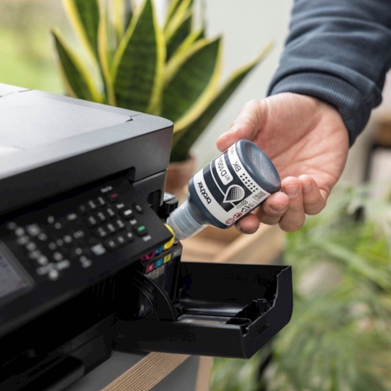 Dizajnirana za ispis visokokvalitetnih dokumenata, Brother BTD100BK originalna crna bocica tinte pruža izniman kapacitet ispisa do 7.500 stranica, bez mijenjanja spremnika tinte. Jednostavno napunite rezervoar tintom i uživajte u dugotrajnom ispisu profesionalne kvalitete.