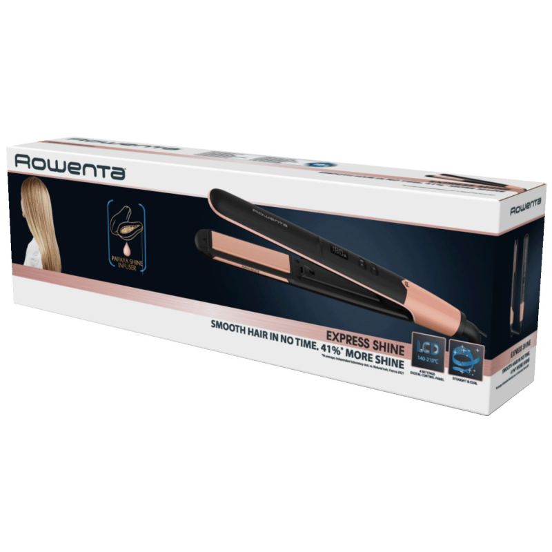 Za glamurozni sjaj koji nikad ne prestaje privući pažnju, pegla za kosu Rowenta Express Shine vaš je novi saveznik u stylingu za prekrasan izgled iz dana u dan. Doživite potpuno nov nivo blistavog sjaja zahvaljujući infuzeru papaje i keramičkim pločama za klizanje bez napora i svilenkasto glatke rezultate. 8 temperatura—uključujući postavku za njegu od 170°C i intenzivni način rada na 210°C—dolaze zajedno s raznim poboljšanim karakteristikama za potpuni paket oblikovanja.