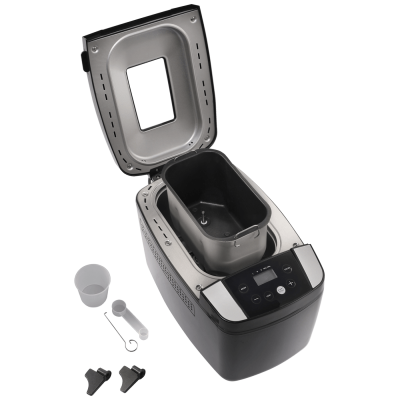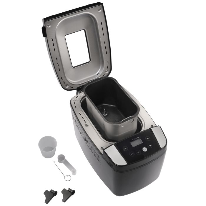 Pekač za hljeb, priključna snaga 800 W max., odstranjiva posuda s neprijanjajućim slojem, 1 posuda za pečenje hljeba, 2 lopatice, 2 veličina hljeba 900 - 1.200 g, kontrolni prozorčić za nadzor procesa pečenja, 12 prethodno podešenih programa 12, program za dizanje tijesta, zvučni signal, funkcija održavanja toplote, nastavak pečenja i nakon prekida el. energije, tipka za uključivanje, elektrnonska kontrola zapečenosti hljeba, LCD display, program za miješanje i dizanje tijesta, brzi program za brze rezultate, program za pravljenje džema za širu upotrebljivost aparata, program za pečenje hljeba bez glutena, mjerna posudica, dozirna kašika, gumirana podloga protiv klizanja, knjižica s receptima za nove ideje, automatsko isključivanje za dodatnu sigurnost, kućište od plastike i metala, dužina priključnog kabla 1.2 met