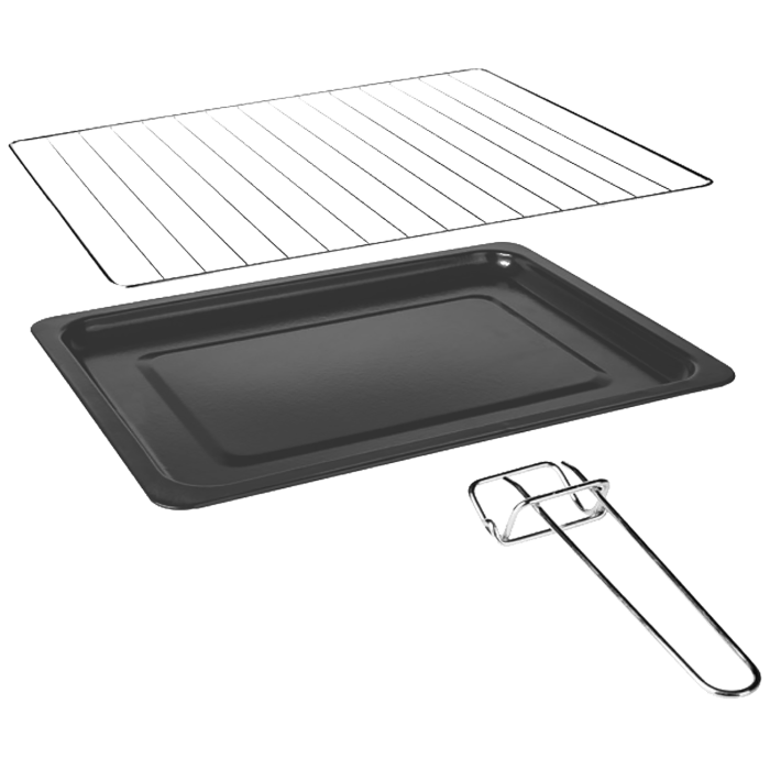 Pribor: pleh za pečenje, stalak, držač ladice za pečenje, pladanj za mrvice, roštilj