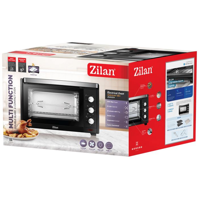 Zilan Mini pećnica sa grillom, zapremina 45 l, 2000 W, crna - ZLN1024