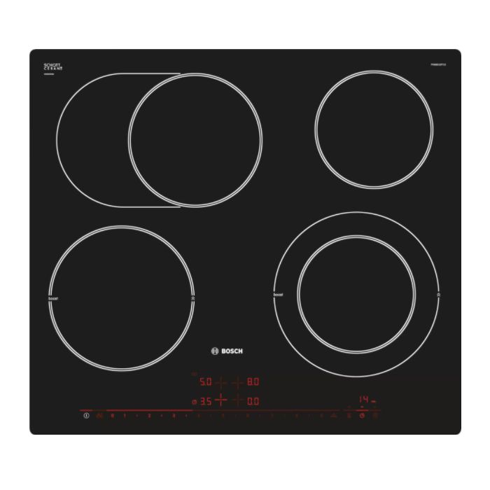 BOSCH Staklokeramička ploča PKN601DP1D Serie 8|; 60 cm; Direct Select-Premium; Bez okvira plosnata ugradnja; 4 HighSpeed polja za kuhanje; 1 dvokružno; 1 ovalno proširivo; DE