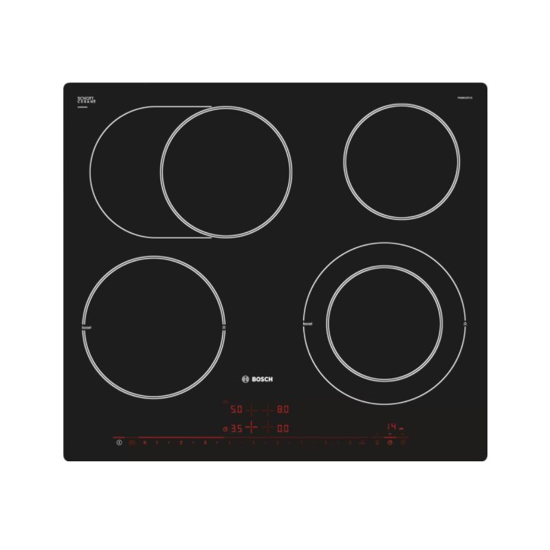 BOSCH Staklokeramička ploča PKN601DP1D Serie 8|; 60 cm; Direct Select-Premium; Bez okvira plosnata ugradnja; 4 HighSpeed polja za kuhanje; 1 dvokružno; 1 ovalno proširivo; DE