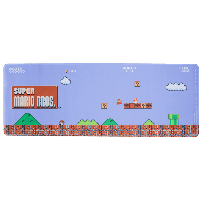 Dimenzija 30 x 80 cm (12" x 31"), Super Mario Bros Desk Mat je ilustrovan šarenom pozadinom World 1-1, tako da možete da se osećate kao da igrate nivo pomijeranja sa strane tokom cijelog radnog vremena!