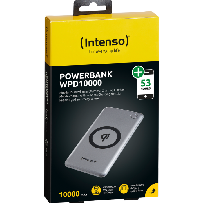 (Intenso) Prijenosni punjač za mobitele i tablete 10000mAh, bežični - POWERBANK WPD10000 silver