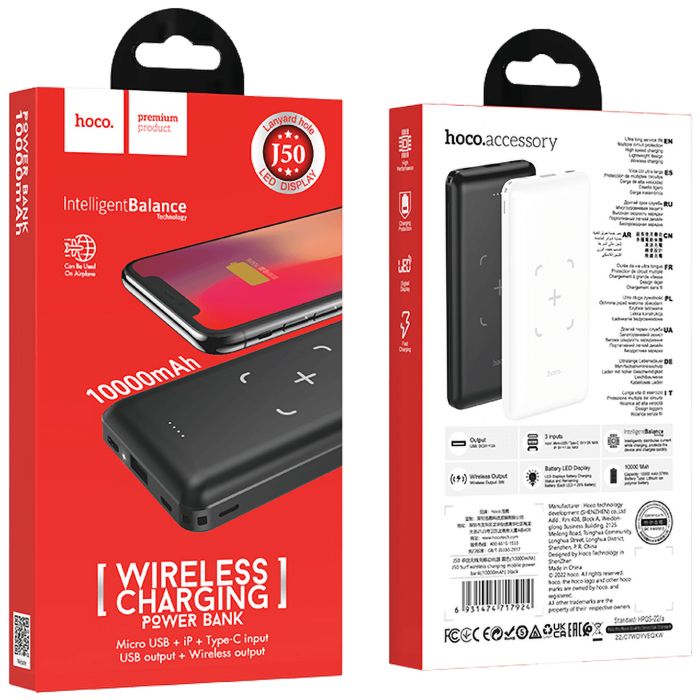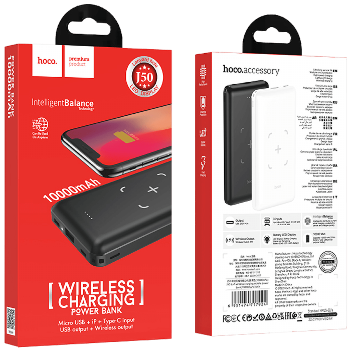 hoco. Punjač prijenosni, USB + bežični, 10000mAh - J50 Surf