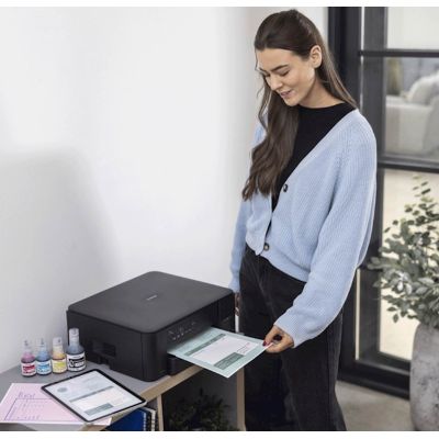 Ispisujte više za manje novca i smanjite troškove ispisa u boji uz bocice tinte izuzetno velikog kapaciteta i rezervoare koji se lako pune. Bez obzira radite li u kucnom uredu, dnevnoj sobi ili kuhinji, uživajte u jednostavnom povezivanju i brzom, bezbrižnom ispisu uz tintni višenamjenski uredaj 3-u-1 s rezervoarima DCP-T430W. Ispisujte direktno s ili skenirajte u putem racunara i mobilne aplikacije.