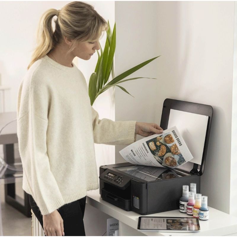 Ispisujte više za manje novca i smanjite troškove ispisa u boji uz bocice tinte izuzetno velikog kapaciteta i rezervoare koji se lako pune. Bez obzira radite li u kucnom uredu, dnevnoj sobi ili kuhinji, uživajte u jednostavnom povezivanju i brzom, bezbrižnom ispisu uz tintni višenamjenski uredaj 3-u-1 s rezervoarima DCP-T530DW. Ispisujte direktno s ili skenirajte u putem racunara i mobilne aplikacije.