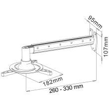 Nosač za projektor, maksimalna nosivot 15 kg, kuglični zglob za podesiv nagib 20°, podesiva udaljenost od zida 260 - 335 mm, kanal za kabel, pribor za montažu
